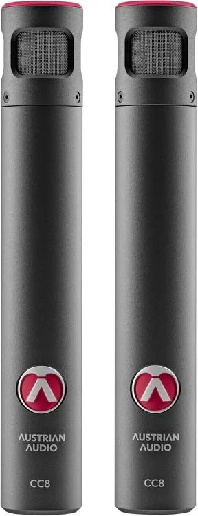 Amazing versatility and valueDesigned, engineered, and manufactured in Vienna, the City of Music, the CC8 delivers outstanding performance, flexibility, build quality, and value — but then, that’s what we expect from Austrian Audio. The CC8 boasts class-leading dynamic range, with a robust 156dB SPL handling and a 16dB equivalent noise level. Combined with its versatile cardioid polar pattern and excellent off-axis response, this means you can deploy it onstage on, let’s say, drum overheads — with high-gain guitar amp stacks on either side — and it will pick up the subtleties of the drummer’s cymbal work. Meanwhile, in the studio, it will flawlessly capture the nuances of a quiet classical string quartet performance, with thrilling realism in the playback. Whatever you aim the Austrian Audio CC8 at, you will be impressed with the results. Now, that’s what we call value! ![]() ![]() Outstanding build quality and performanceAs a class, small-diaphragm condenser mics are the precision, fine-tipped arrows in the recording engineer’s quiver. In contrast with large-diaphragm designs (which offer their own unique advantages), their low-mass capsules allow for the speed to optimally capture the sparkling detail in transient-rich sources such as acoustic guitar and cymbals. With its Austrian pedigree, the CC8 naturally not only excels in such applications, but also on relatively low-dynamic sources like classical ensembles and choirs. And you can be confident when using a pair of them for stereo pickup, as each CC8 is precision calibrated to within +/-0.5dB at 1kHz. Whether you work in music recording, live sound, or broadcasting, the Austrian Audio CC8’s linear frequency response, beautifully natural and open sound, and smooth, silky highs make it a mic you will reach for constantly. Austrian Audio: the new Vienna classicsCarrying on the legacy of high-end Viennese transducer and microphone design into the modern era, Austrian Audio is driven by an engineering team with over 300 years of combined experience. Their motto: “Making Passion Heard.” Their mission: to design and manufacture a new generation of recording tools that embrace cutting-edge technologies and sonic excellence while honoring Vienna’s rich musical heritage. That vision is realized in Austrian Audio’s proprietary handcrafted capsules and the superior build quality of their products. Sweetwater is proud to bring you Austrian Audio’s distinguished lineup of fine microphones. ![]() Austrian Audio CC8 Small-diaphragm Condenser Microphone Stereo Set Features: